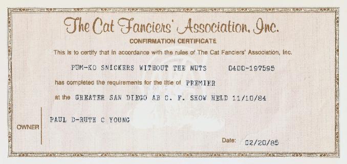 coat. His official Cat Fanciers